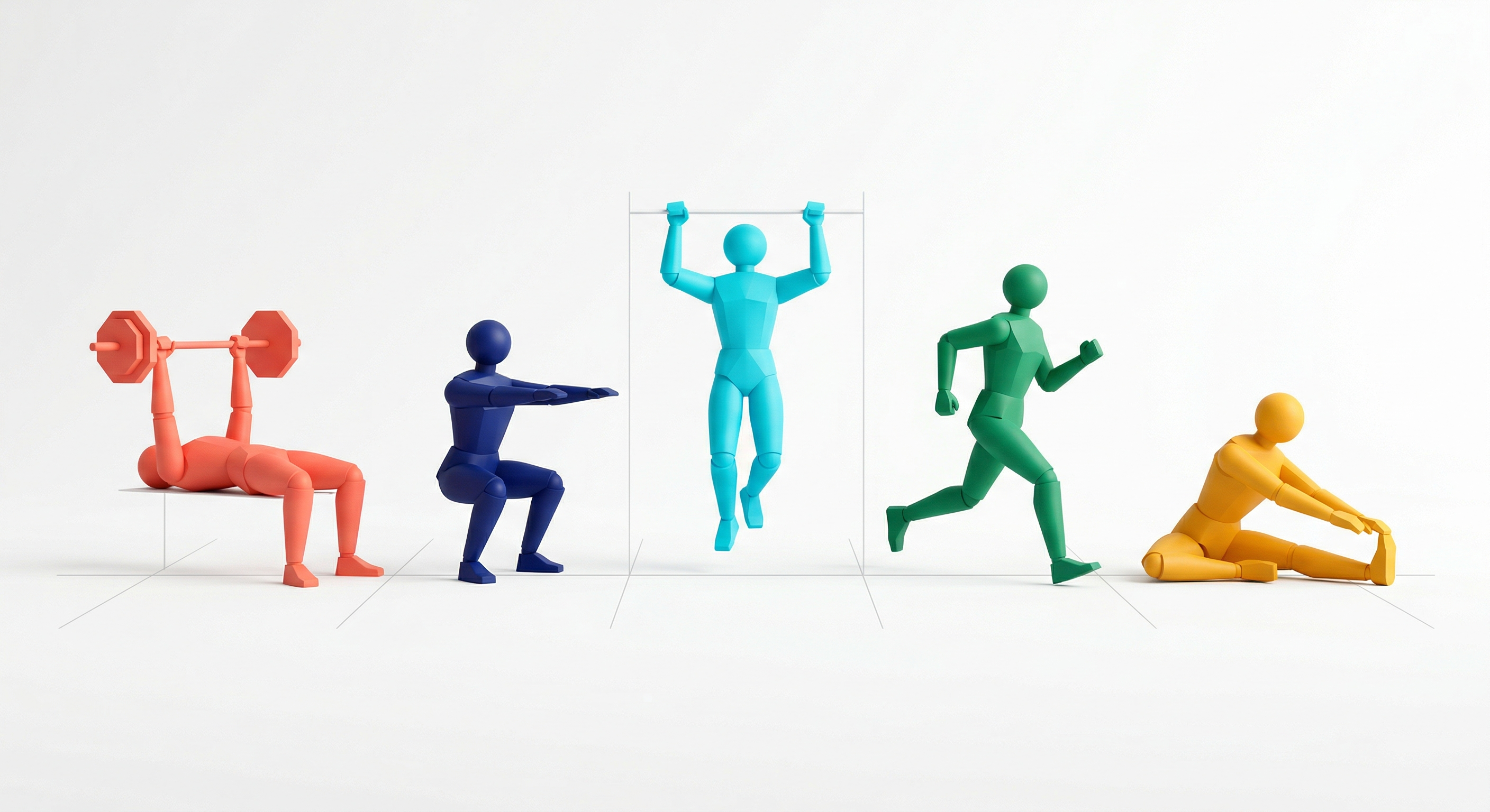 - +Consistent 3D mannequin style across every exercise