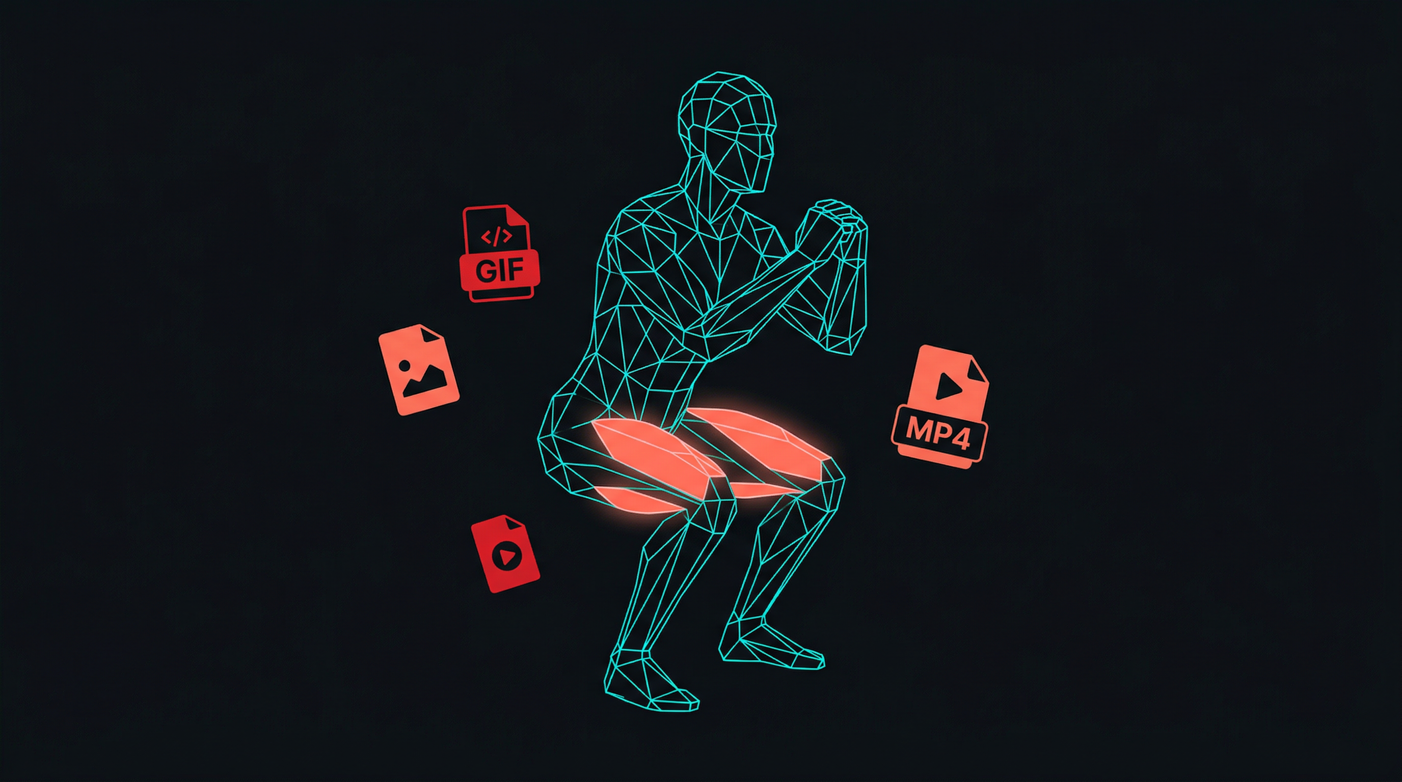 A page with 10 exercise GIFs can load 50+ MB of data. The same exercises as MP4: under 4 MB total. For a deeper breakdown of format tradeoffs, see the exercise animation vs GIF comparison.